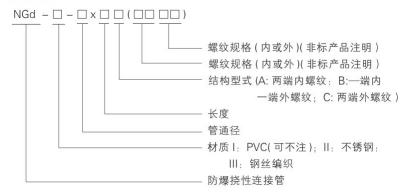 ·防爆撓性管由活接頭與連接管組成,連接管由內(nèi)管和外護(hù)套組成
